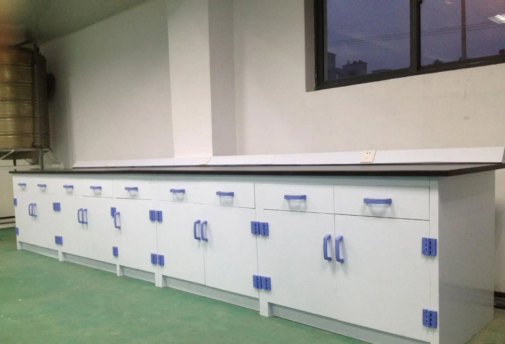 PP材质落地式结构;柜体:采用8mm瓷白色PP板焊接一体成型,具较强之抗折弯性,具有耐酸碱特性,外形美观大方,铰链/把手:采用耐强酸、强碱材质,拉门采用同质PP聚丙稀材料制作;含国产理化板台面。